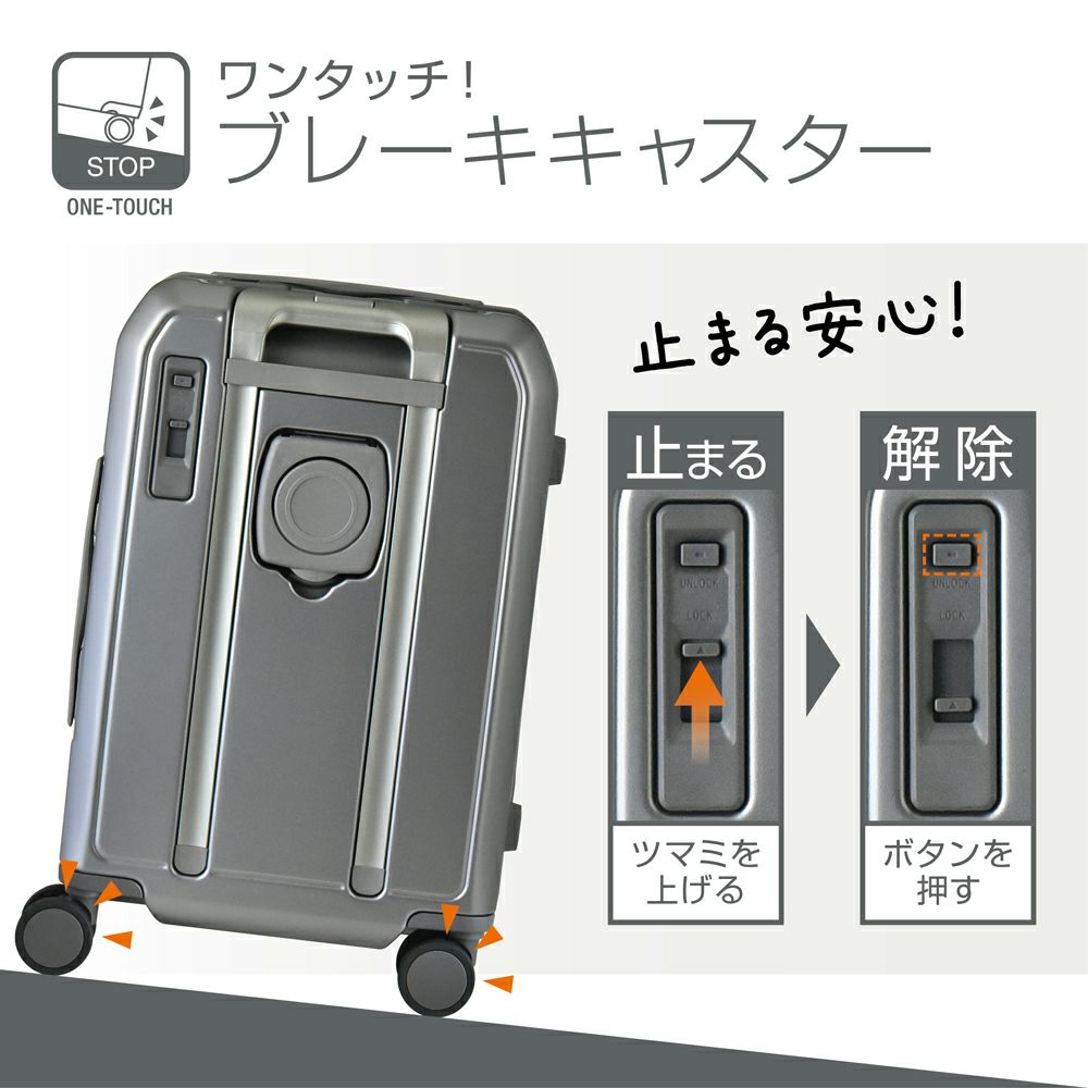 ストッパー HINOMOTO製 超静音キャスター フロントオープン ポケット 貫通型 容量拡張 大容量 軽量 拡張 ビジネス