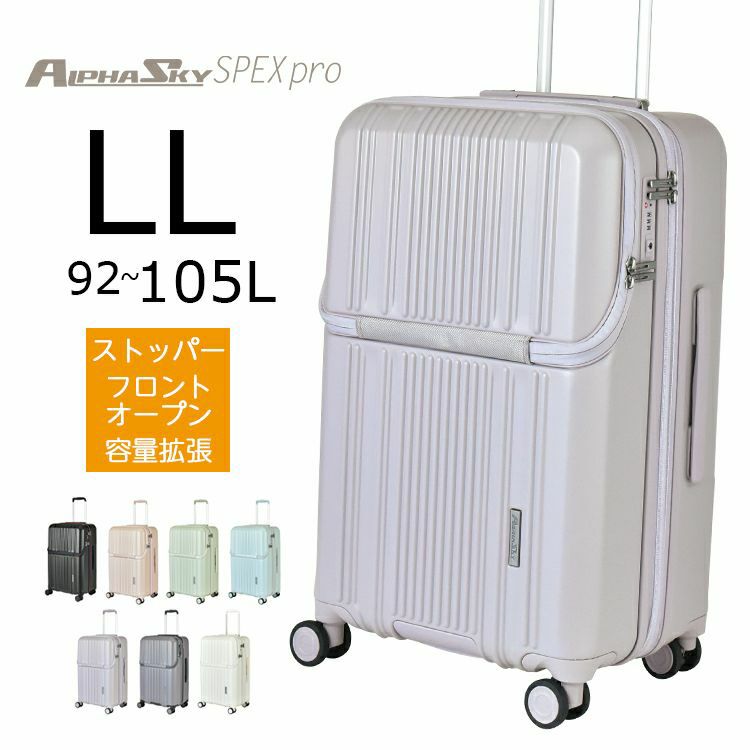 ALPHA SKY(アルファ スカイ)777SPEXpro LLサイズ【92リッター】無料預け入れサイズ 拡張機能【105リッター】 ストッパー フロントオープン スーツケース キャリーケース 軽量 ビジネス 軽い 超大容量 長期出張 ハード キャリーバッグ おしゃれ キャリー ケース 旅行 バック