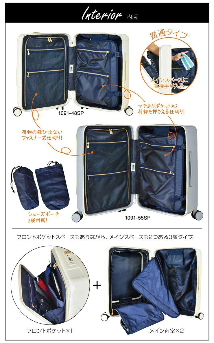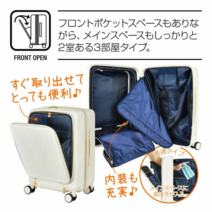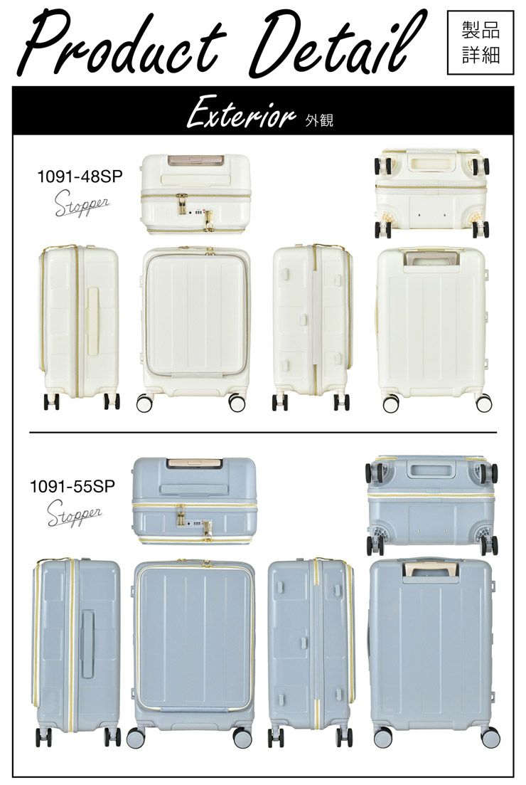 ストッパー HINOMOTO製 超静音キャスター フロントオープン ポケット 貫通型 容量拡張 大容量 軽量 拡張 ビジネス