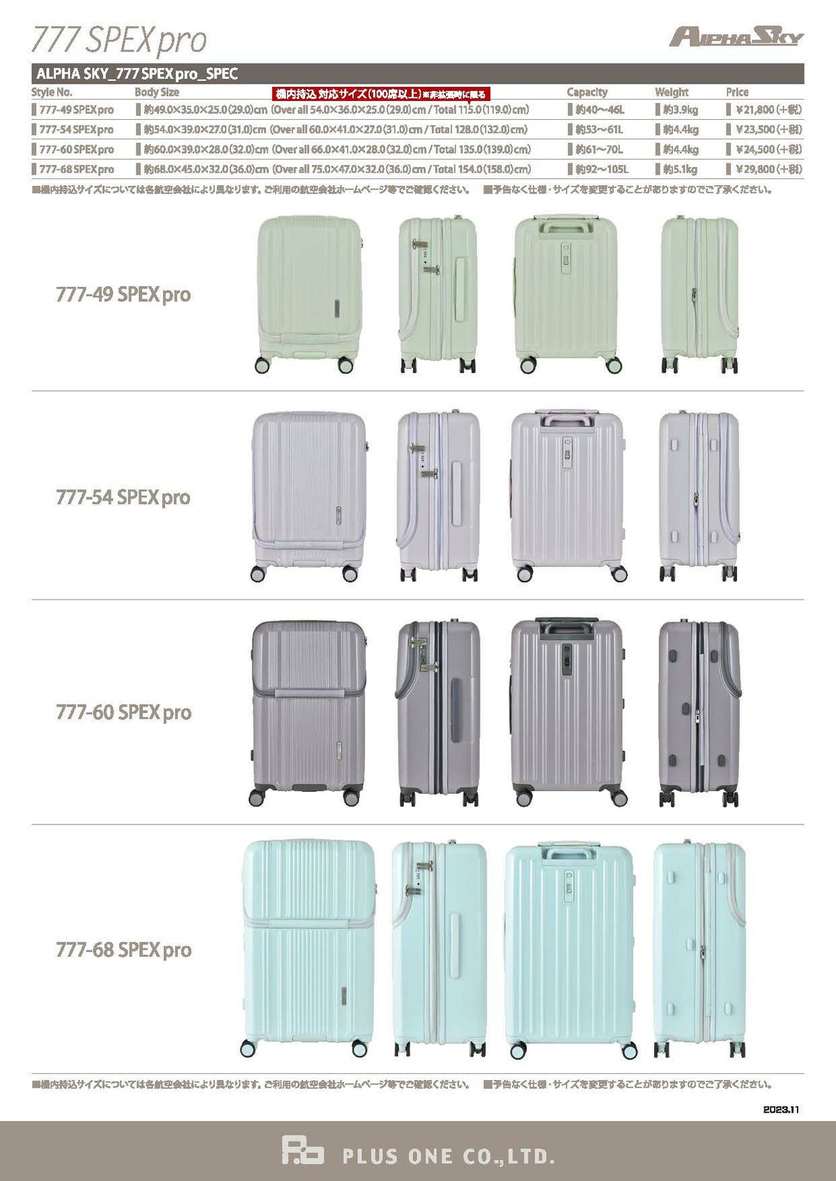 送料無料 プラスワン スーツケース ALPHA SPEX アルファスカイ