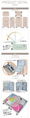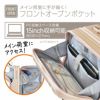• フロントオープン前ポケット機能フロントポケットの最大の特徴は、ケースを立てたまま荷物の出し入れができることです。通常のケースでは寝かせる場所が必要になりますが、フロントポケットは空港やホテルロビー、狭い機内でも場所を取らずに前面のポケットから取り出せ大変便利です。