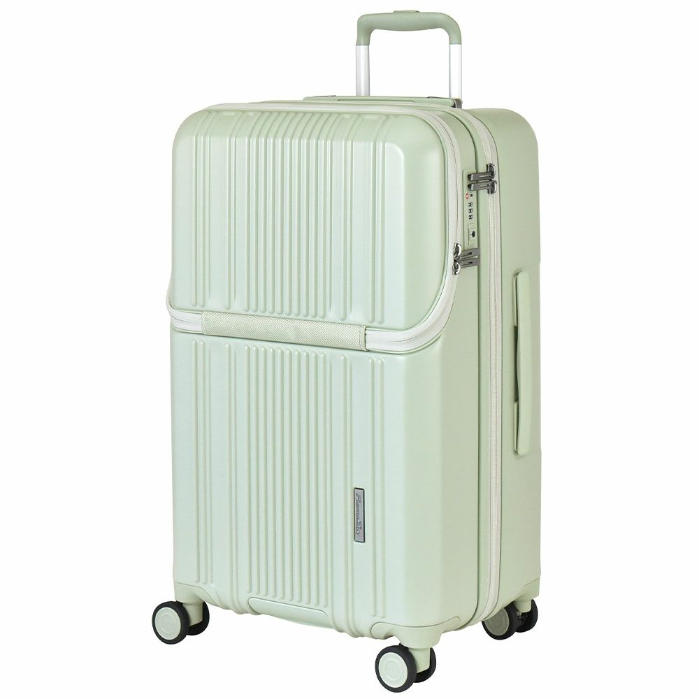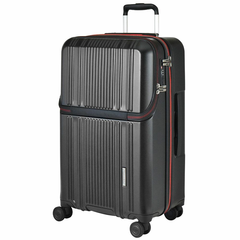• フロントオープン前ポケット機能フロントポケットの最大の特徴は、ケースを立てたまま荷物の出し入れができることです。通常のケースでは寝かせる場所が必要になりますが、フロントポケットは空港やホテルロビー、狭い機内でも場所を取らずに前面のポケットから取り出せ大変便利です。