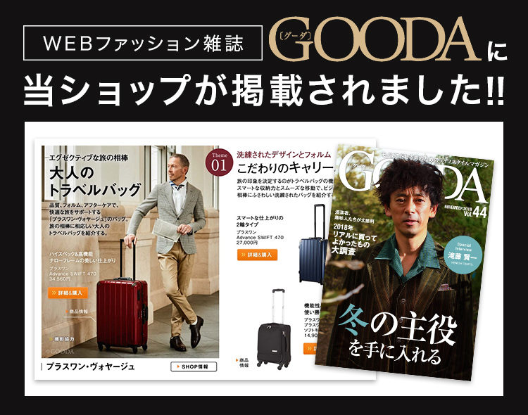 プラスワンの商品の《こだわり》は、『品質』、『フォルム』、『アフターケア』の3点に重点を置いています。『品質』に関しては、各パーツのオリジナル開発、特にアイテムによりスーツケースの鍵となるキャスターを『HINOMOTO』社との共同開発により、信頼性、走行性、耐久性の向上を図っています。また、『2 重検品』を採用し、不良品の徹底排除に努めています。『フォルム』は、弊社デザイナーにより『独自性』、『かっこ良さ』に重点を置き、旅先での素敵な相棒 となります。アフターケアは、弊社スタッフが迅速な対応をし、お客様の快適な旅のサポートをして参ります。プラスワンは信頼と実績、そして《こだわり》を 追求しているブランドです。