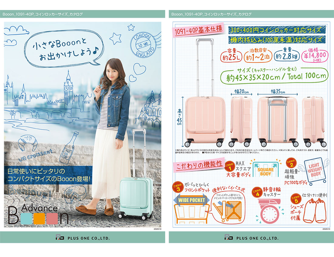 • プラスワン自社企画開発商品プラスワン製品は「品質」「デザイン」「アフターケア」の3つに重点をおき、日本に拠点を置くラゲッジメーカーならではのオリジナリティと高い基準の管理を徹底しています。