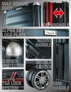 • 機内持込MAXサイズ(100席以上)100席以上の航空機に対応した機内に持ち込むことができるサイズ(三辺合計115cm以内)でありながら、大容量を実現した製品です。※お客様の搭乗クラス・渡航先・三辺合計規定・重量制限など、各航空会社によって規定が異なりますので、対応のサイズであっても持込みが制限される場合がございます。詳しくはご利用になる航空会社のホームページ等をご確認ください。