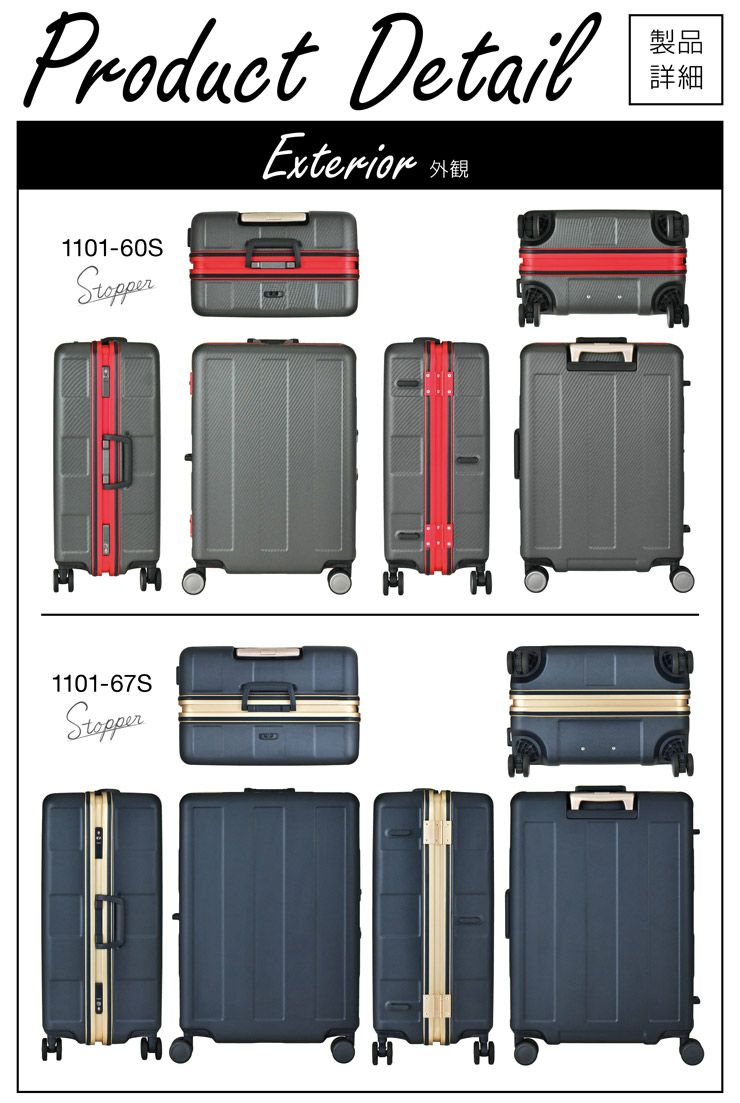 ストッパー HINOMOTO製 超静音キャスター フロントオープン ポケット 貫通型 容量拡張 大容量 軽量 拡張 ビジネス