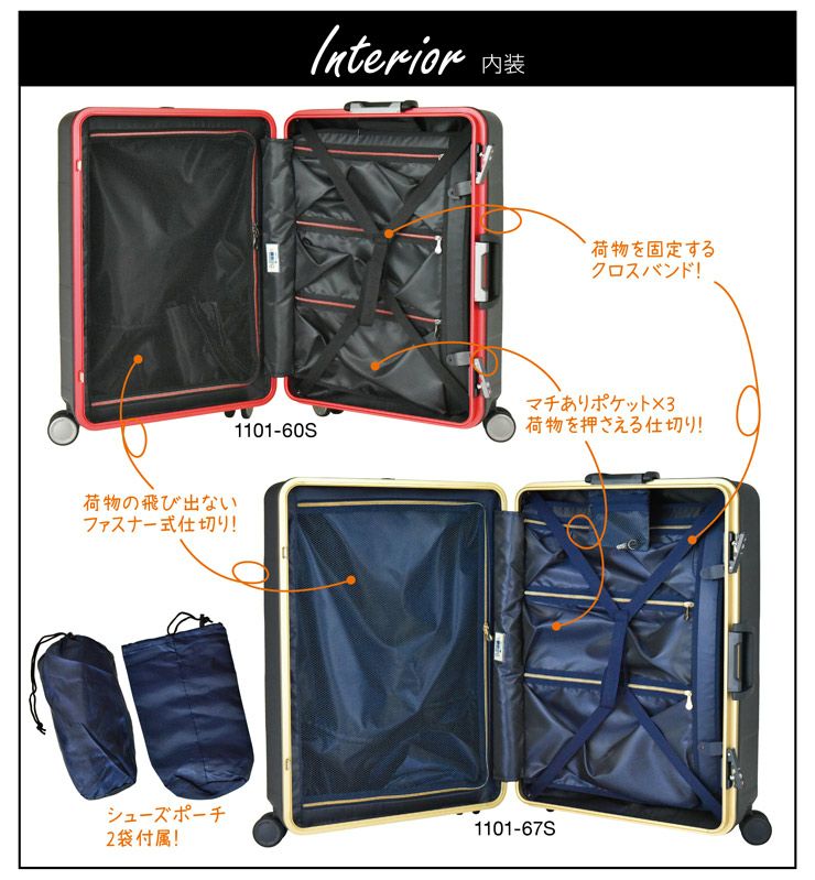 プラスワン スーツケース Advance Booon Frame(アドヴァンスブーン フレーム)60cm 容量:67L/重量:4.8kg 【Lサイズ】【1101-60S】|アドバンスブーン キャリーケース かわいい 軽量 アルミフレーム 大容量 キャリーバッグ おしゃれ キャリー ケース