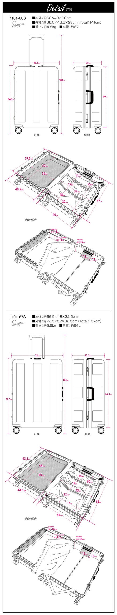 送料無料 メーカー直営店・安心の1年保証付き!プラスワン スーツケース 旅行・ビジネスに大活躍の多機能スーツケースです。